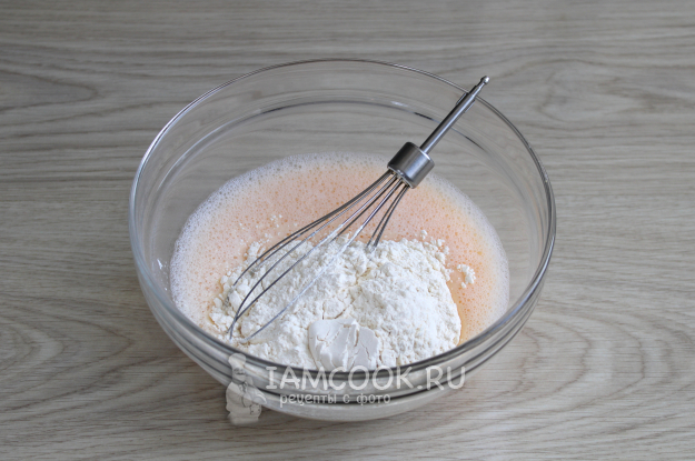 Добавьте муку и перемешайте до однородного состояния.
