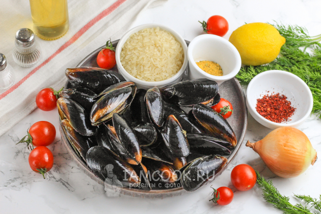 Продукты для приготовления фаршированных мидий по-турецки - перед вами!