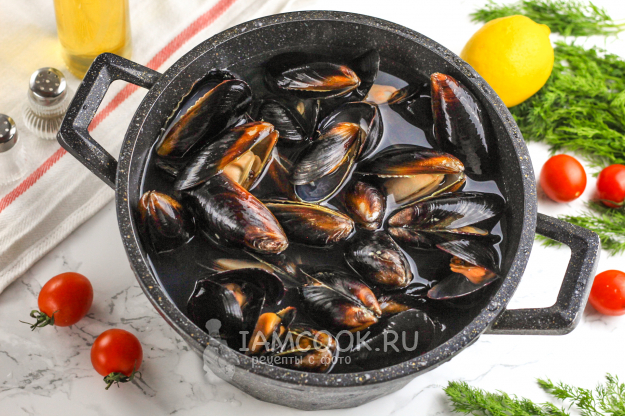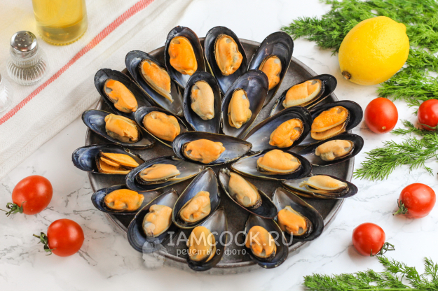 Мидии можно купить в рыбном магазине (они продаются замороженными) либо на рынке в свежем виде. Если покупаете свежие морепродукты, то обязательно проследите, чтобы каждая ракушка была закрыта! Замороженные мидии разморозьте при комнатной температуре или в воде - после разморозки ракушки откроются, это нормально!