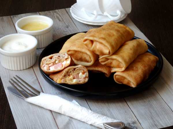 Готовые блинчики с печенью трески и яйцами сразу же подаем к столу. Приятного аппетита!