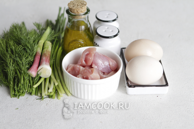 Все необходимые продукты для приготовления куриных котлет с зеленью - перед вами.