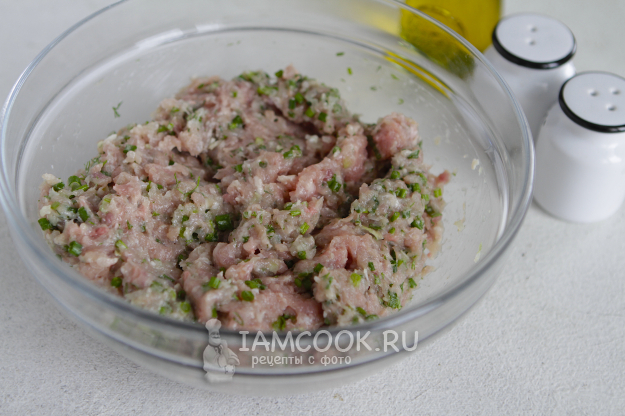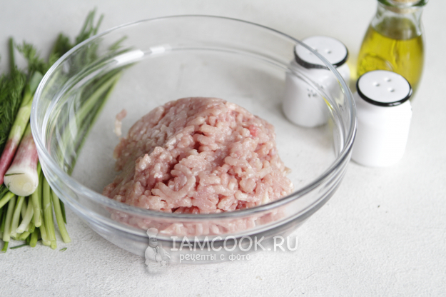 Подготовить фарш. Для приготовления фарша я использовала бедренную часть курицы. Это мясо самое сочное. Можно приготовить фарш из микса разных частей курицы.