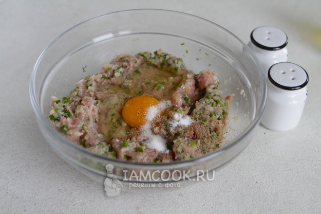 Ввести одно яйцо и специи по вкусу: соль, черный перец, можно добавить сушеный чеснок, сладкую или острую паприку.