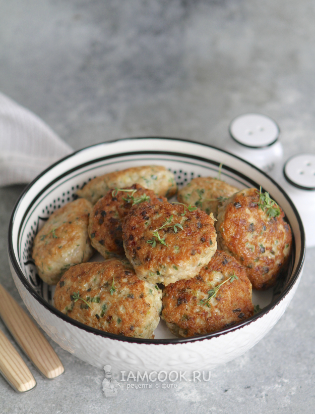 Нежные и сочные куриные котлеты с зеленью готовы.