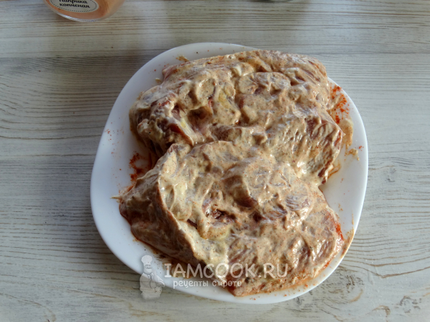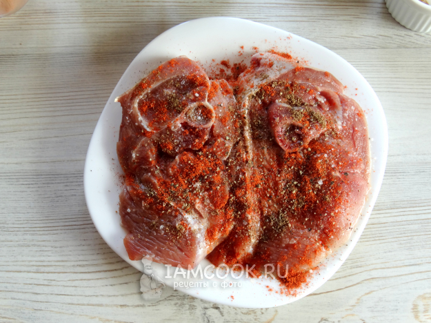 Стейки посыпать специями и солью с обеих сторон. Немного втереть рукой.