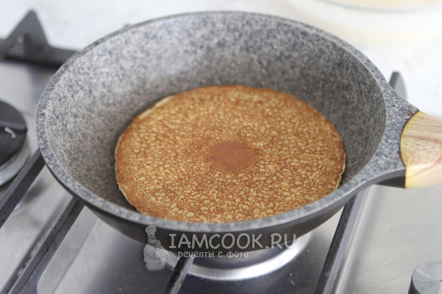Выпекать блины на среднем огне с двух сторон примерно по 2 минуты.