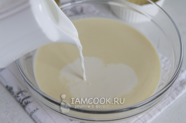 Еще раз тесто пробить погружным блендером. Консистенция теста будет чуть гуще, чем на обычные блинчики. Влить в тесто масло и дать настояться ему 15 минут.