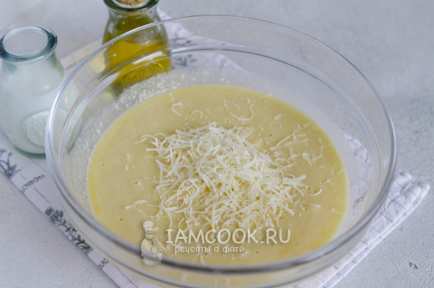 Все ингредиенты пробить блендером. Сыр натереть на мелкой терке.