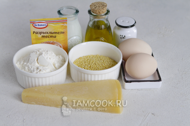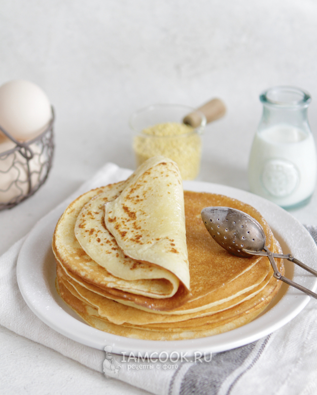 Соберите все необходимые продукты для приготовления блинов на пшенной каше без дрожжей.