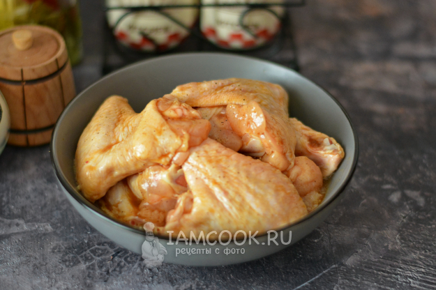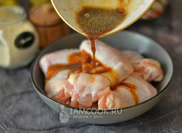Тщательно перемешайте и помассируйте крылышки, чтобы распределить маринад равномерно. Накройте плёнкой и оставьте мариноваться при комнатной температуре на 1 час.