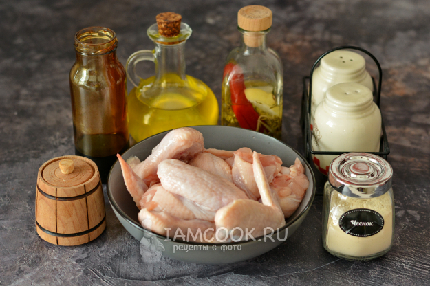 Подготовьте все необходимые продукты для запекания куриных крылышек в рукаве в духовке.