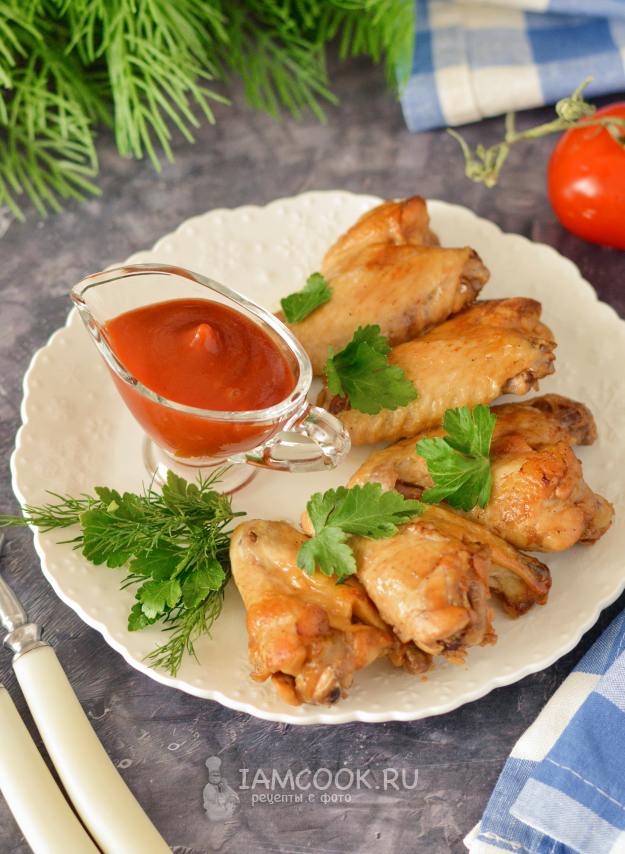 Куриные крылышки готовы. Подавайте горячими и не забудьте про соусы к ним.