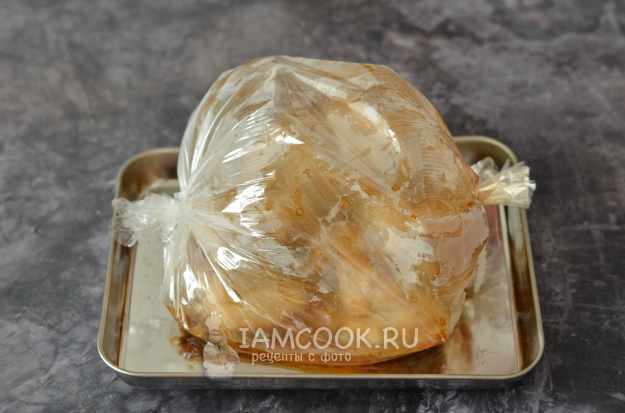 Выложите крылышки в рукав для запекания и завяжите оба конца.