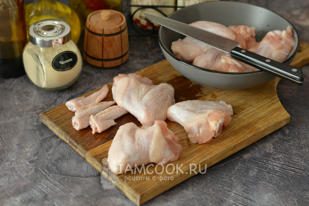 Я запекаю крылышки, удалив у них крайнюю фалангу с "пальчиками". На мой взгляд, так эстетичнее, да и подсыхает она сильно в духовке. Если привыкли запекать крылышки целиком, так и поступайте. Я не настаиваю на этом моменте.