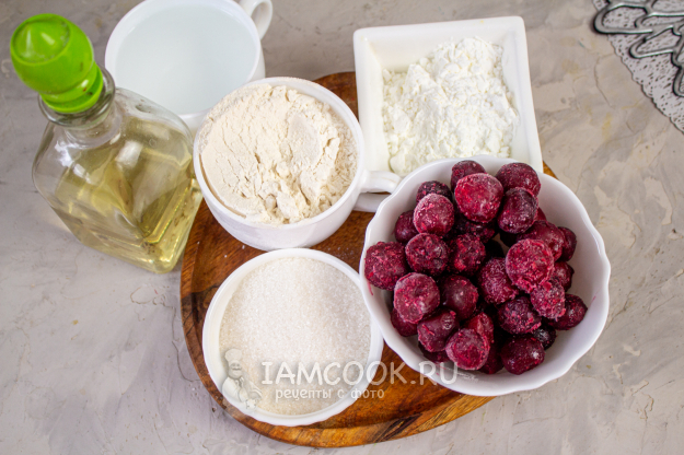 Все необходимые продукты для постной галеты с вишней - перед вами. Количество сахара регулируйте по своему вкусу.