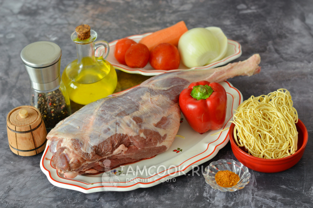 Соберите все необходимые продукты для приготовления лагмана из баранины в мультиварке.