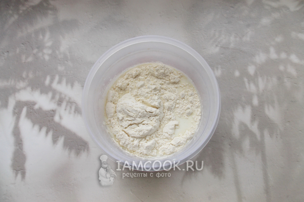 Постепенно насыпьте муку, каждый раз перемешивая тесто.