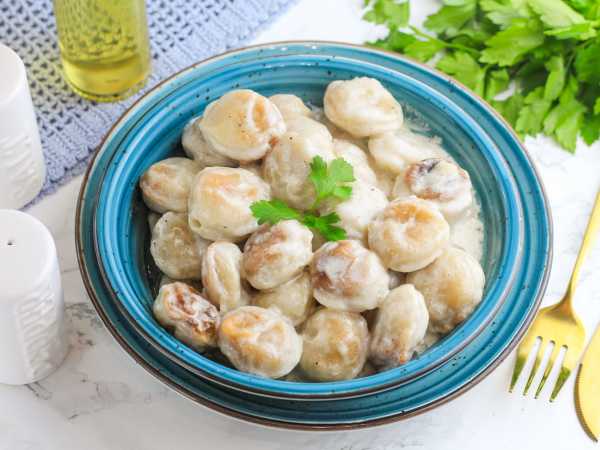 Готовые пельмени со шпинатом в тесте разложите по порционным тарелкам, положите поверх кусочек сливочного масла и подавайте к столу. Приятного аппетита!