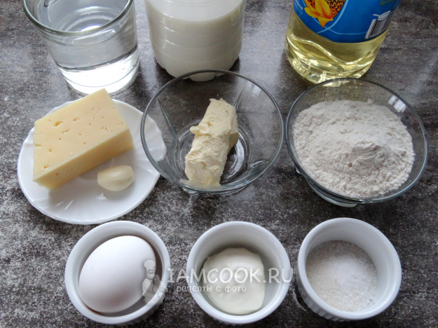 Блины с сыром и чесноком готовить будем из таких ингредиентов.