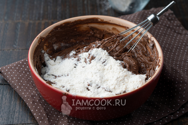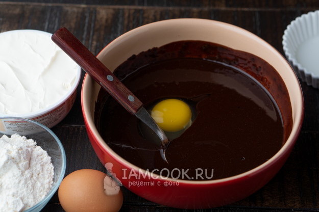 А теперь добавляем яйца по одному. Шоколадная масса к этому времени должна остыть до теплого состояния.