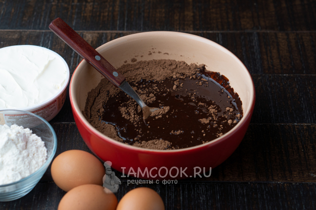 В еще горячую массу всыпаем какао, размешиваем до однородности.