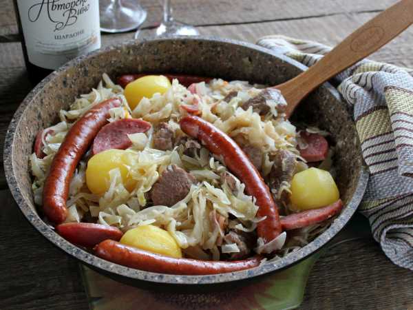 Соберите все ингредиенты для приготовления жульена с колбасой и грибами.