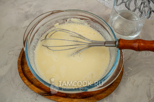 Влейте горячую воду (не кипяток!), температура - около 40-50 градусов. Тщательно перемешайте.