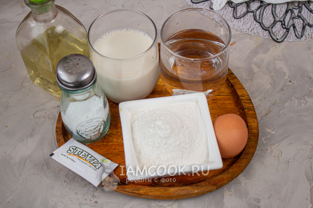 Подготовьте по списку все необходимые продукты для безглютеновых блинов из рисовой муки на миндальном молоке. Молоко слегка подогрейте.