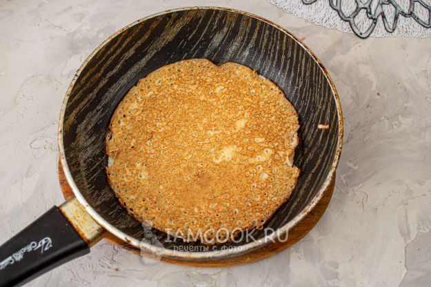 Жарьте блины на хорошо раскаленной сковороде с двух сторон при среднем нагреве. Так как рисовая мука оседает на дно посуды, перед тем как вылить очередную порцию, хорошо перемешивайте тесто.