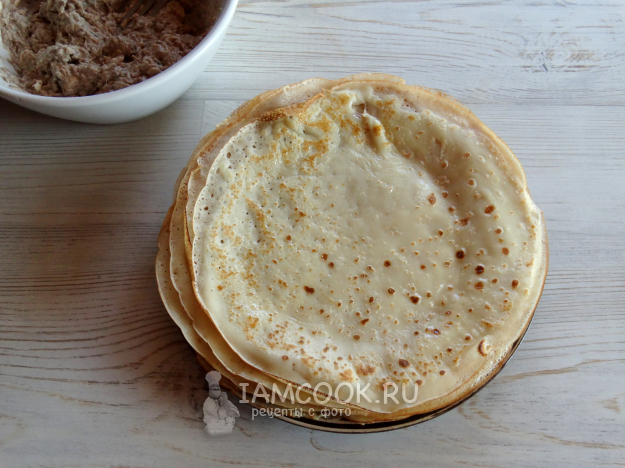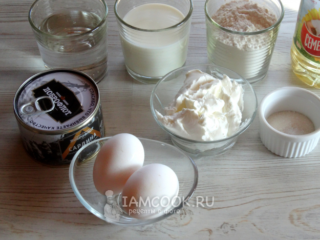Блины с рыбными консервами готовим из таких ингредиентов.