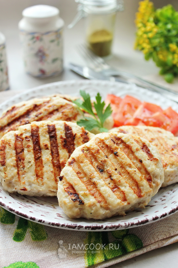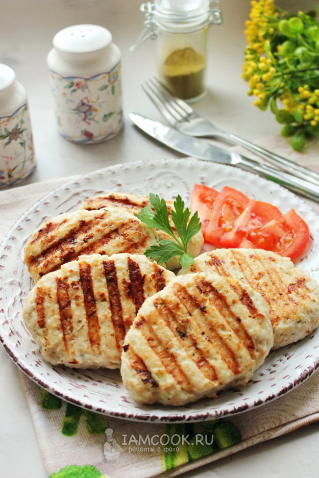 Соберите ингредиенты для приготовления куриных котлет на электрическом гриле.