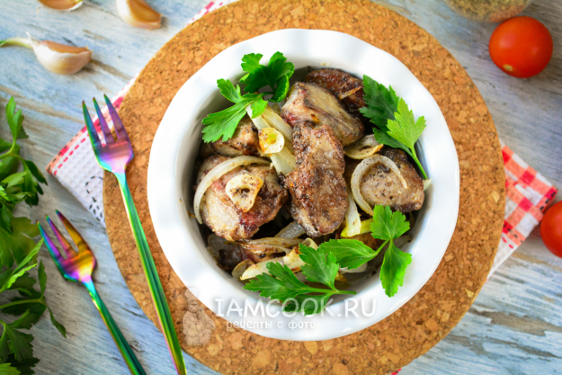 Обжаренную куриную печень с чесноком сразу подавайте к столу. Гарниром к ней может стать отварной рис или картофельное пюре.