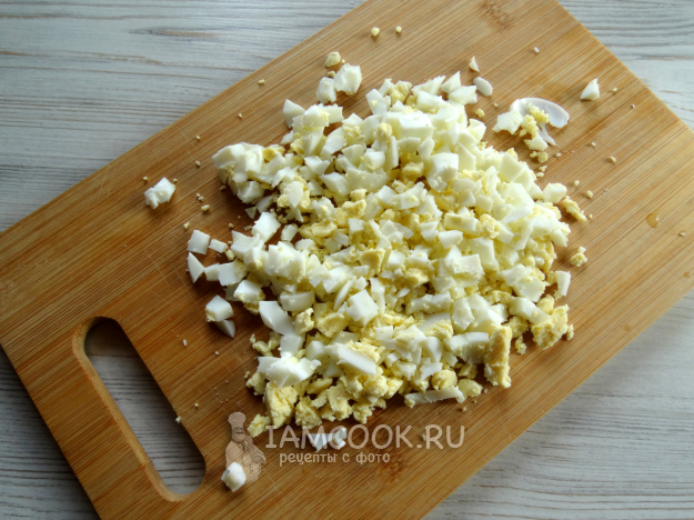 Два яйца для начинки надо сварить вкрутую, затем остудить в холодной воде.