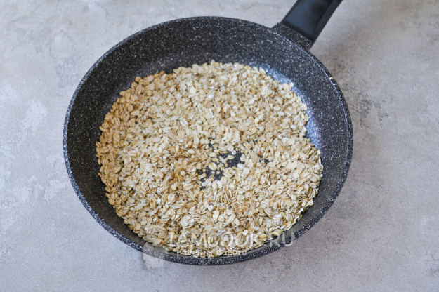 Хлопья, помешивая, обжарьте на огне выше среднего до приятного орехового аромата, примерно 7-8 минут.
