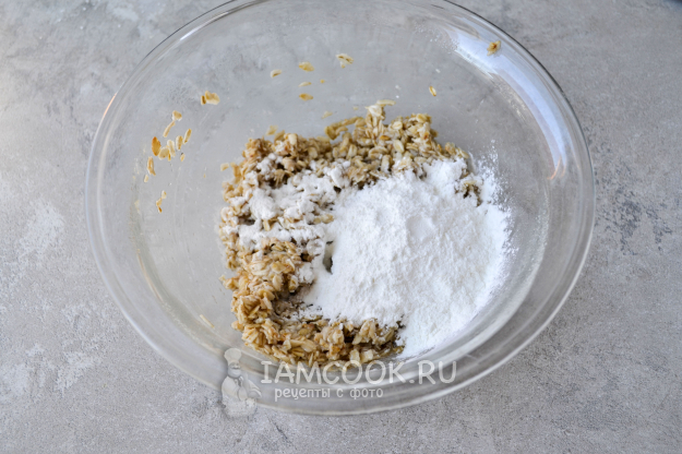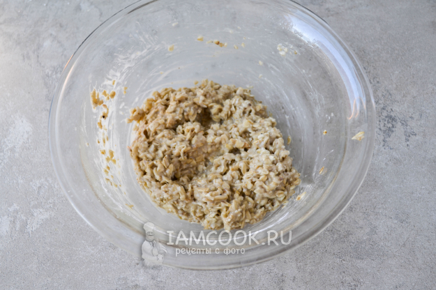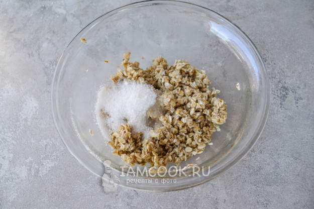 К размягченным хлопьям добавьте сахар и растительное масло. Тщательно перемешайте массу.