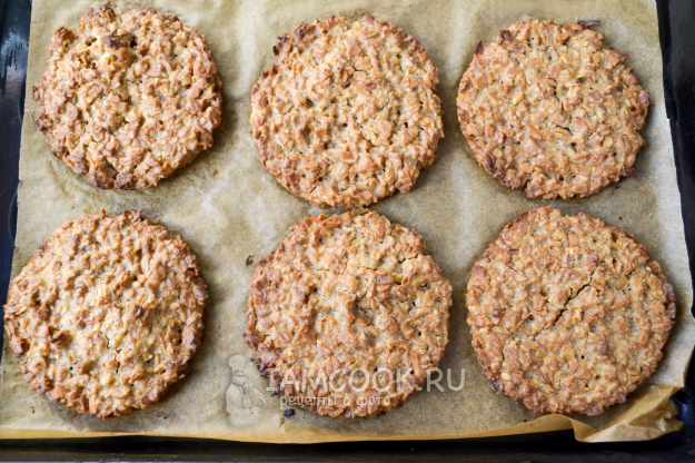 Испеченное постное печенье из овсяных хлопьев получается мягким. Остыв, корочка печенья становится хрустящей.