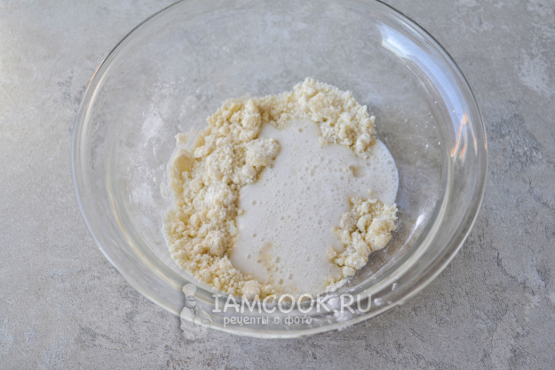 Влейте в миску опару. Перемешайте.