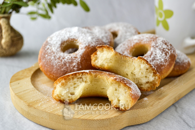 Соберите продукты для приготовления постных пончиков в духовке (из дрожжевого теста).