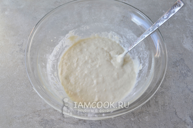 Тщательно перемешайте муку с водой. Должно получиться тесто как жидкая сметана.