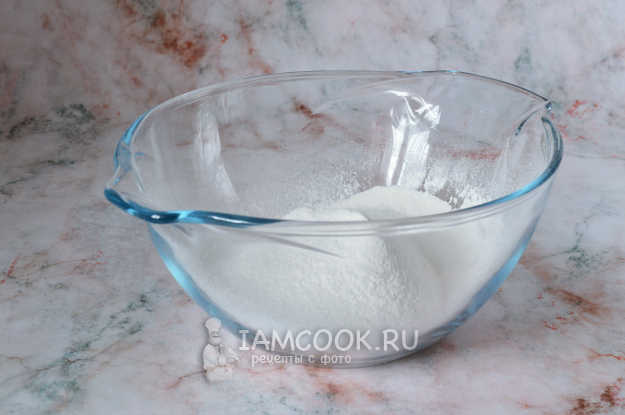 Муку просеять с разрыхлителем в емкость для смешивания.