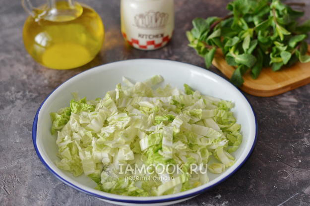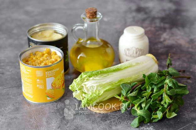 Подготовьте все необходимые продукты для салата с пекинской капустой и ананасом.