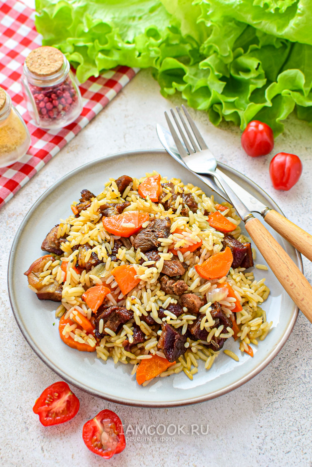Плов с бараниной готов! Разложите его по тарелкам и подавайте к столу. Приятного аппетита!