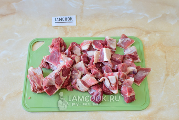 Баранину промойте в проточной воде, обсушите и порубите на кусочки.