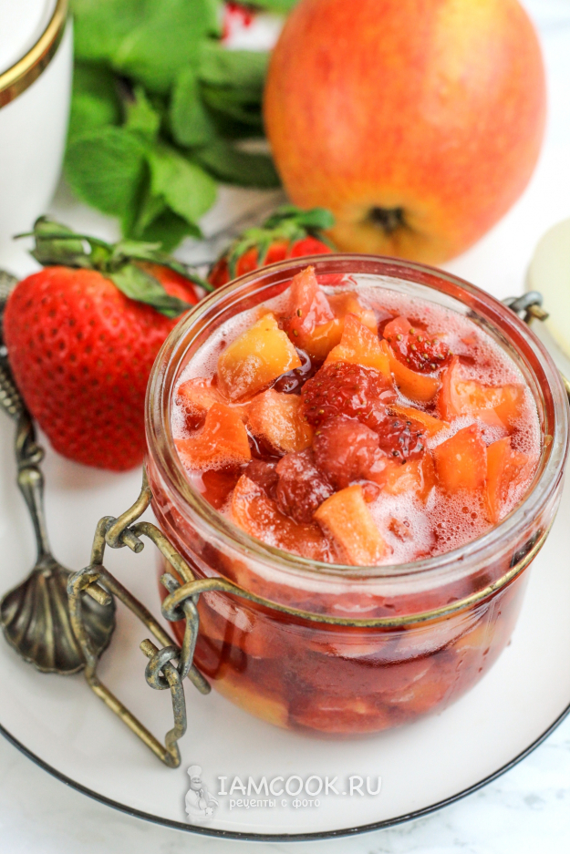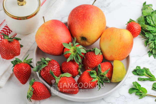 Продукты для приготовления варенья из яблок с клубникой на зиму - перед вами!