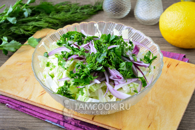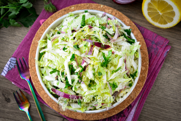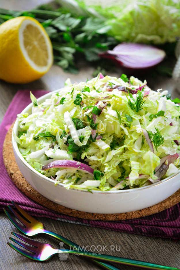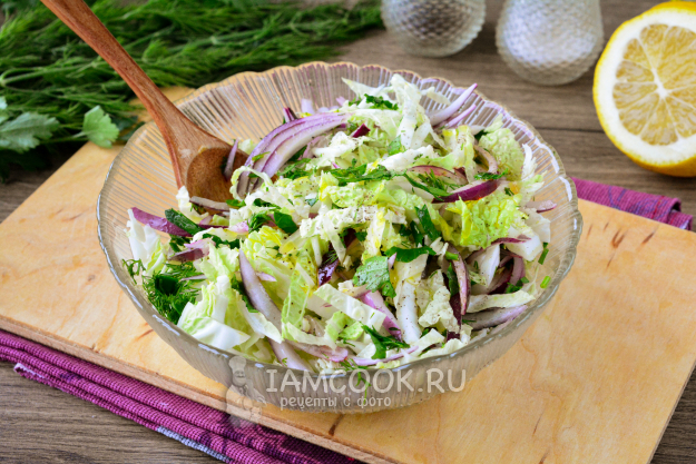 Салат с пекинской капустой с луком можно подавать на стол. Такой салат незаменим для здорового питания!