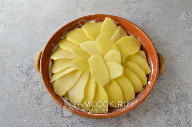 Поставьте форму в разогретую до 180°С духовку приблизительно на 50 минут. Первые 20 минут форму можно закрыть фольгой. Затем фольгу снять и запекать до красивой румяной сырной корочки и полной готовности картофеля.