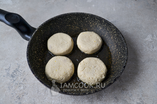 Разогрейте сковороду с растительным маслом и положите сырники.