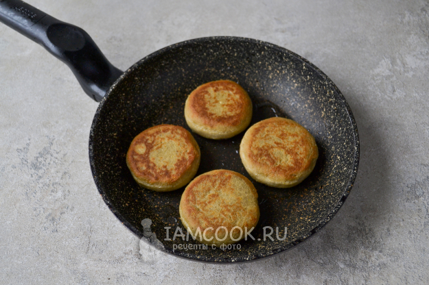 Обжаривайте сырники поочередно с обеих сторон до румяной корочки, примерно по 5 минут на умеренном огне.