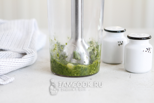 Погружным блендером пробить зелень с маслом.