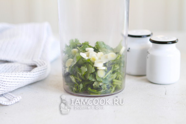 Готовую зелень порубить и переложить в стакан блендера.